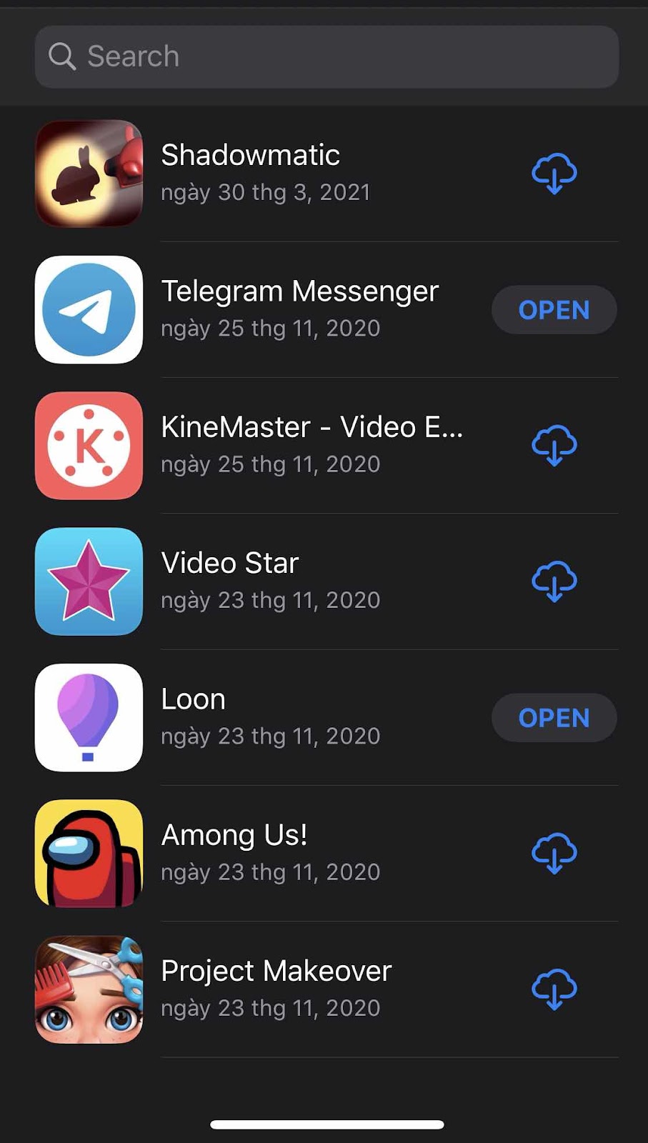 Vào mục đã mua -> Chia sẻ (Puchaser) Download app mà bạn muốn