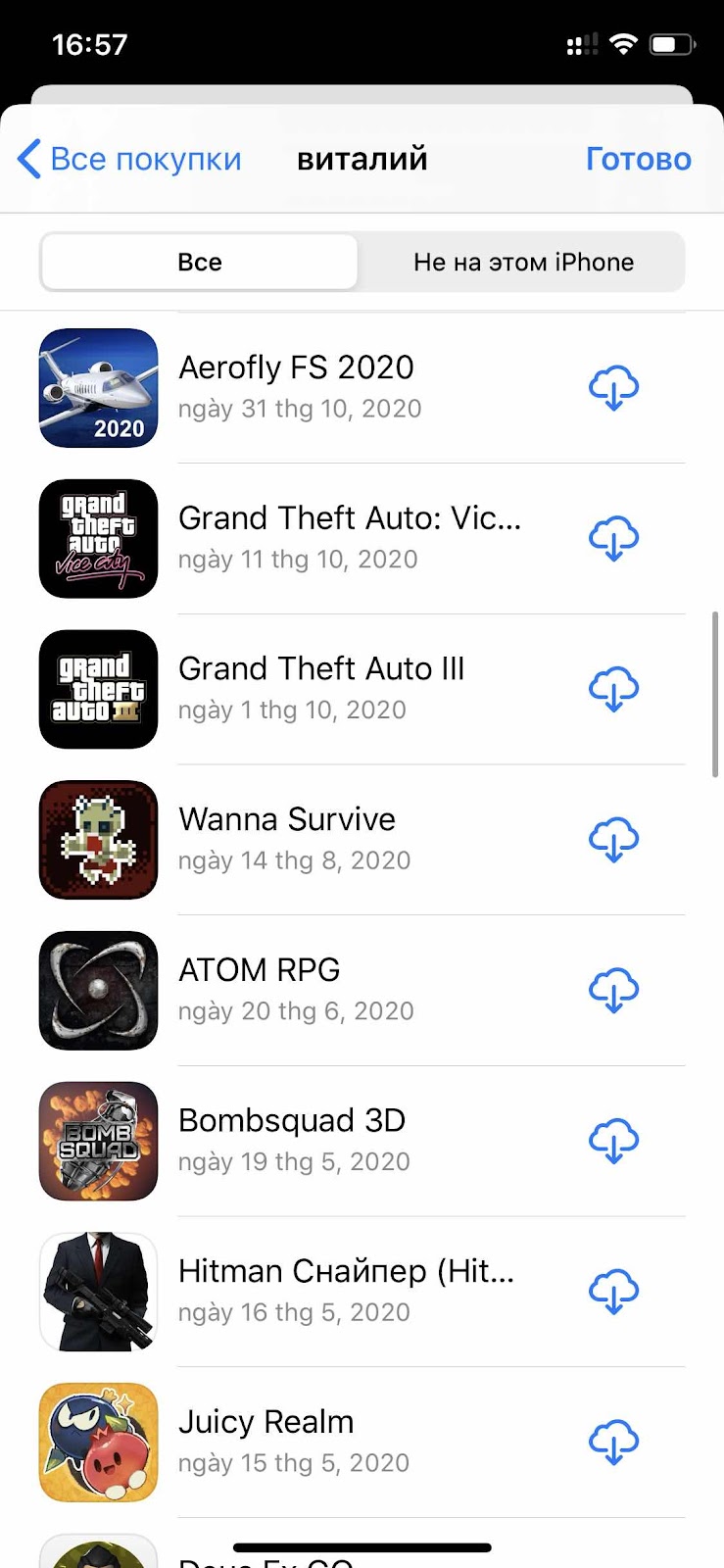 Vào mục đã mua -> Chia sẻ (Puchaser) Download app mà bạn muốn